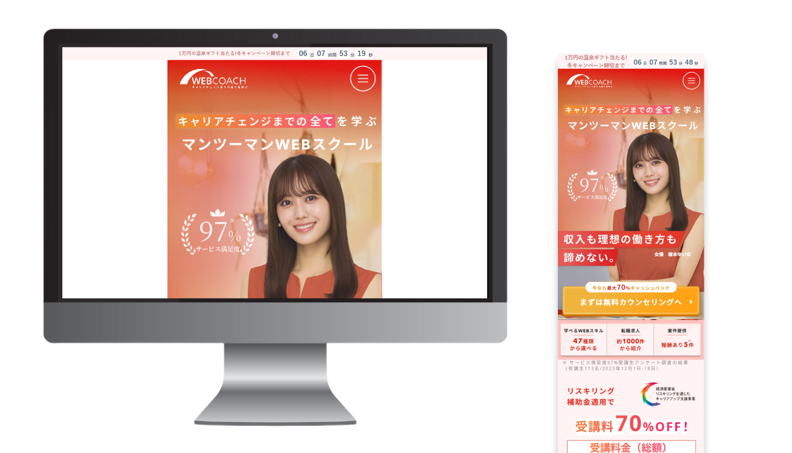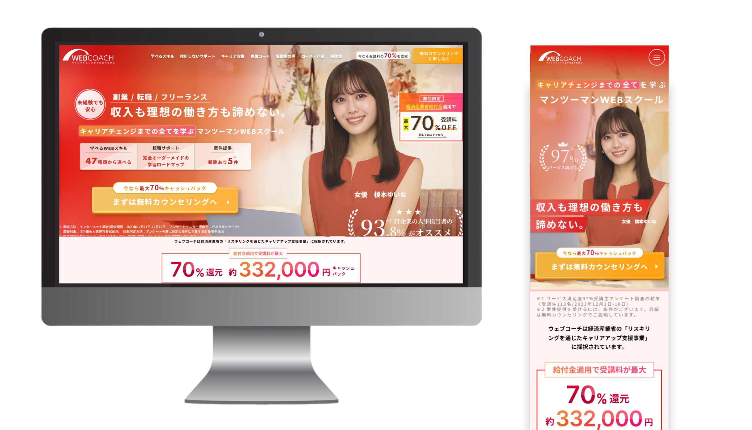 WEBCOACHは、キャリアまで全てを学び理想の”収入と働き方”、どちらも叶えるためのマンツーマンWEBスクールです。